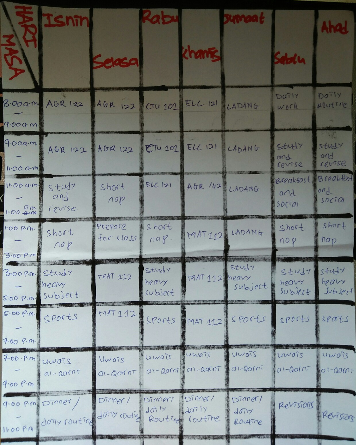 As a student, we need to always catch up on university updates. For that reason, we need to make a schedule or time table to make sure we can manage our time effectively, so we wont end up getiing tierd and take a fully rest when weekend comes.