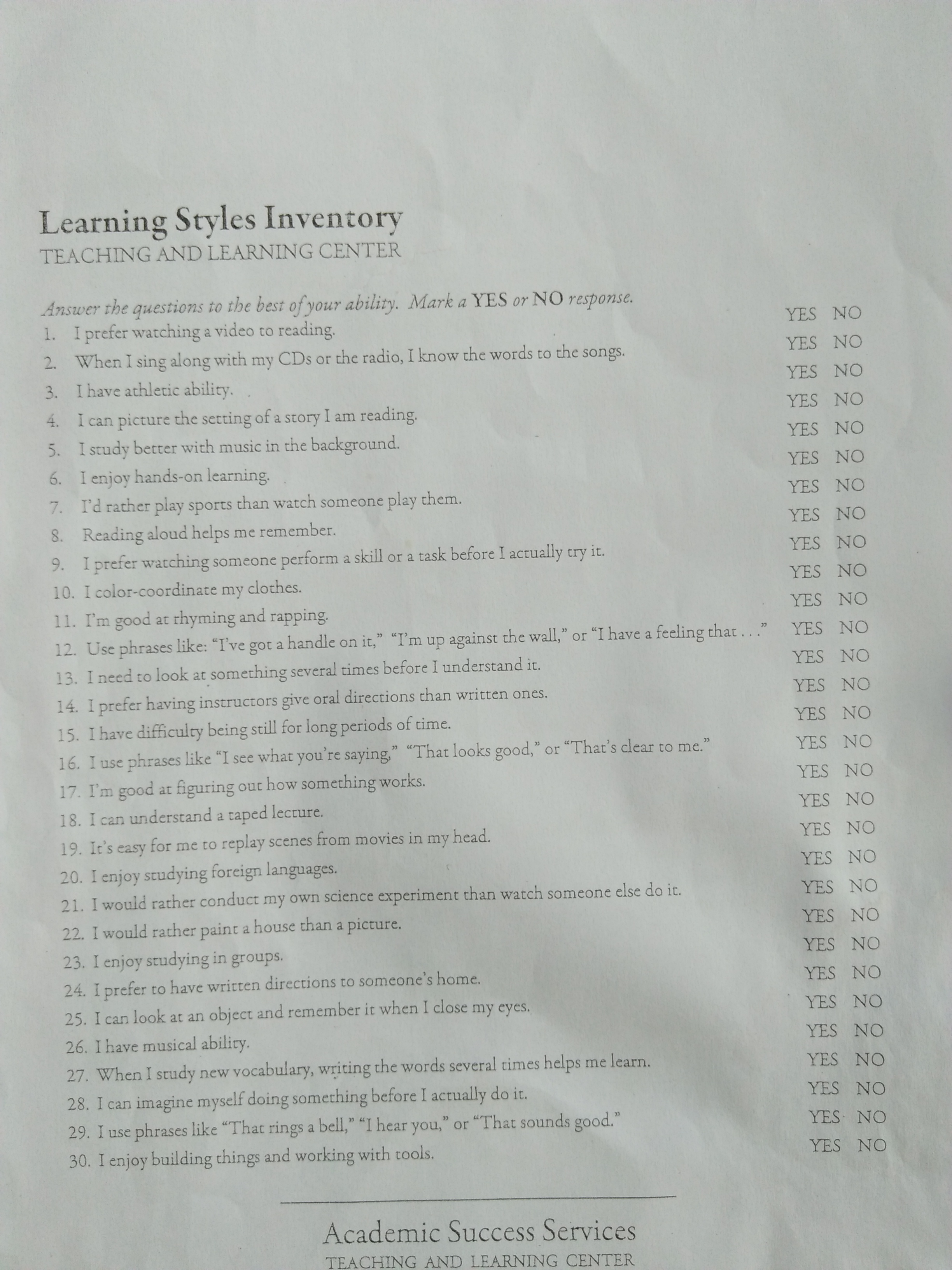 Answering question about my learning style.