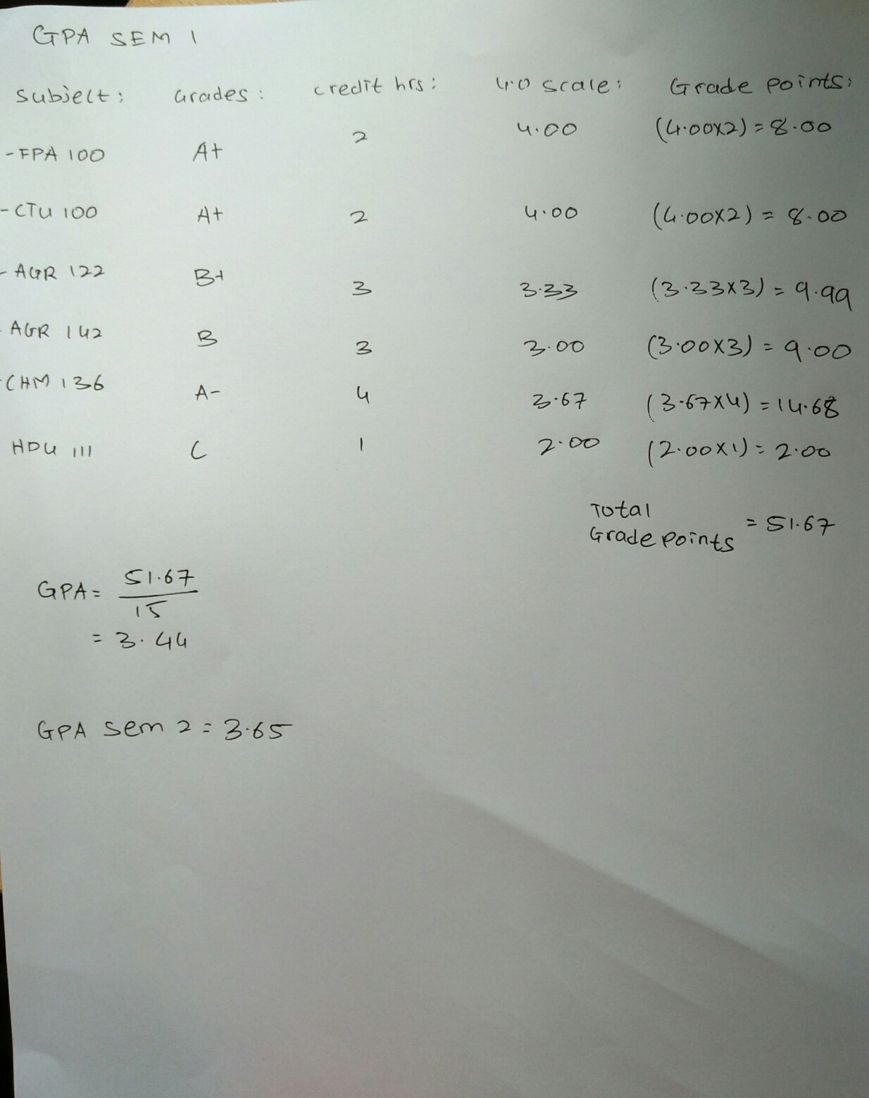 GPA CALCULATION: