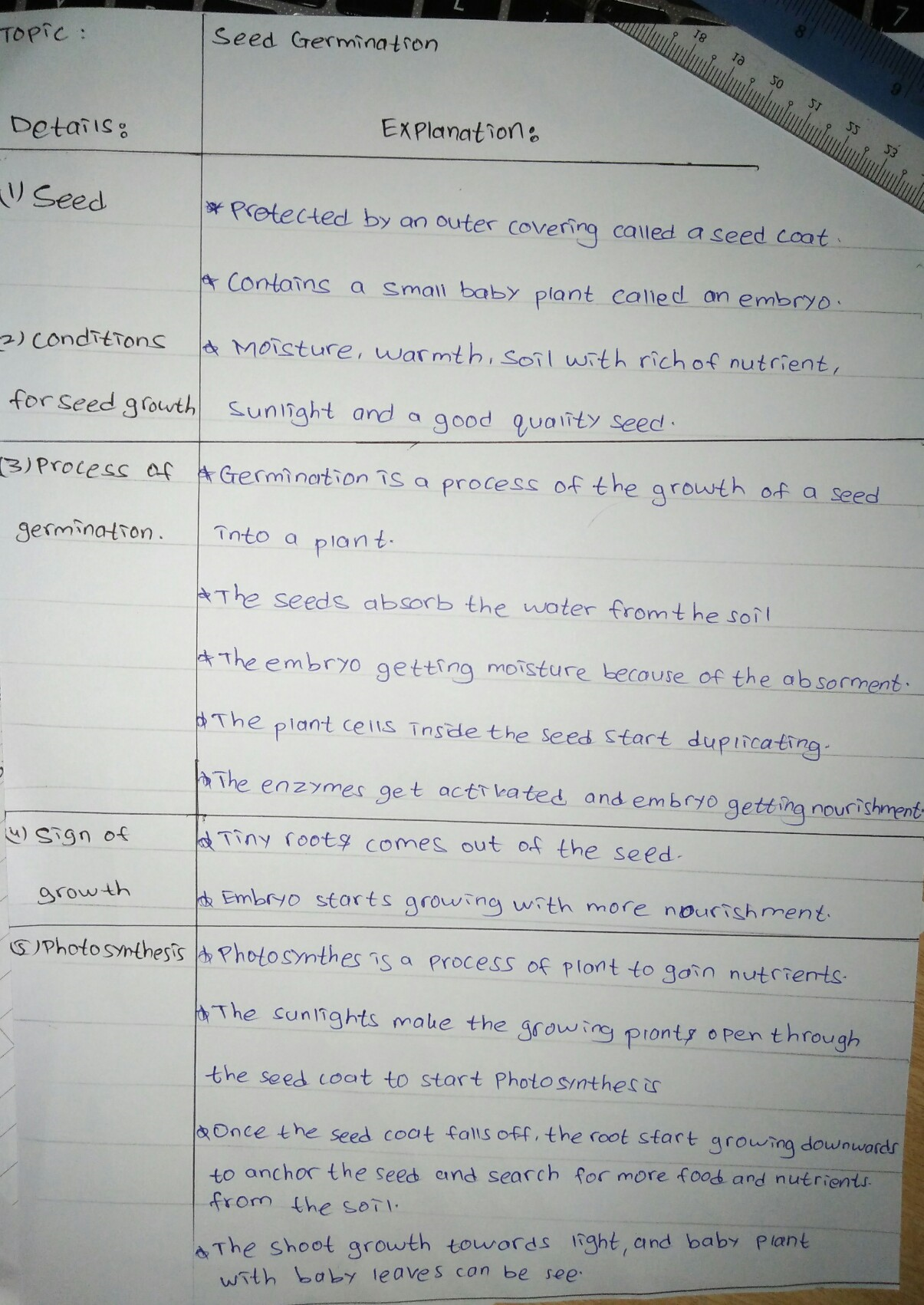 Explanation about seed germination using Cornell note method.